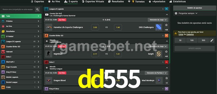 O dd555 oferece uma grande seleção de opções de apostas em e-sports com probabilidades competitivas